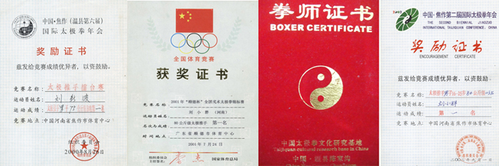 2001年4月.参加河南省太极拳、剑、推手锦标赛,夺取男子太极推手80 公斤级第一名;