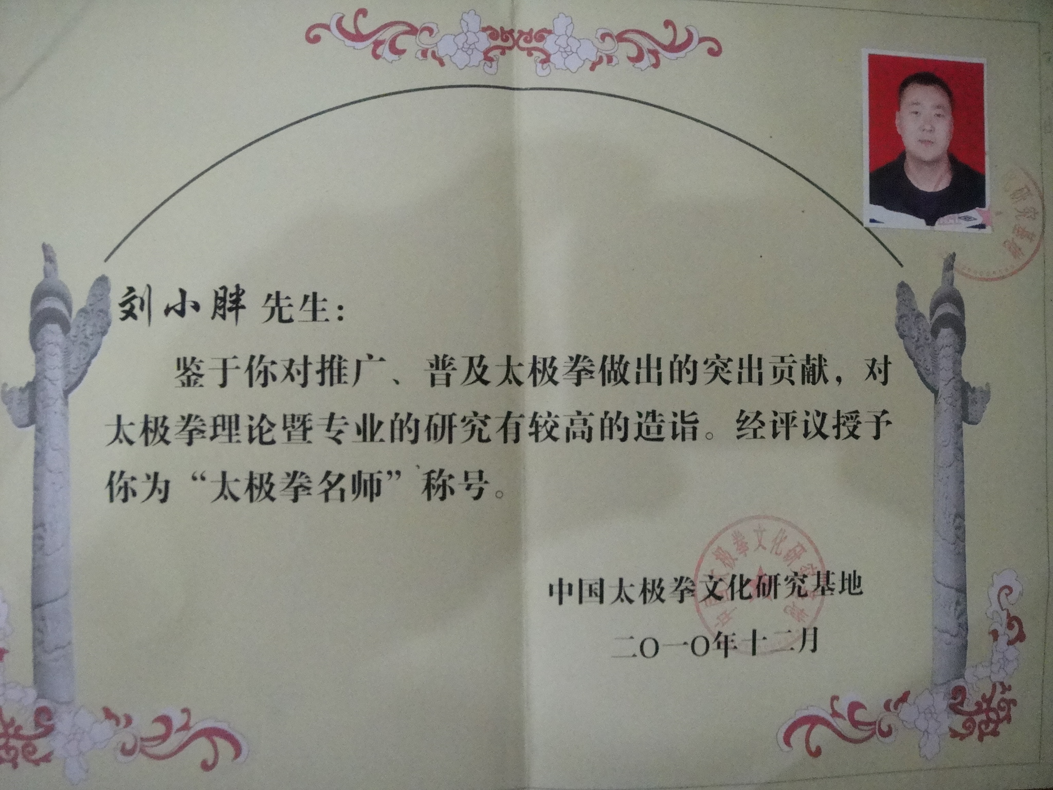 刘小胖现任国家一级体育指导员、中国陈家沟太极拳总会高级教练兼常务理事会理事,陈家沟太极拳武校主教练,陈家沟太极拳(成都)传习中心总教练。被中国太极拳研究基地评为太极拳名师《陈式太极拳志》、《陈家沟功夫》、《太极圣地陈家沟》、《中华武术》、《中国体育报》、《河南日报》、《羊城晚报》、《成都商报》、《佛山日报》、《焦作日报》等媒体广泛宣传报道。