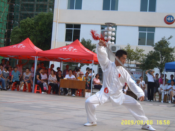 在闭幕式上,单人表演了陈式太极单刀。刚猛的刀势让练剑的拳友们感受了与剑分格迥异的陈式太极刀,有位阿姨的话,让我不禁莞尔:“小伙子,怎么你的单刀这么快就结束了,我都还没看过瘾就没了,能不能把太极十三刀多重复一边,打成二十六刀也好看得过瘾呀...”(囧rz)