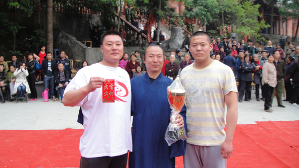 弟子张海涛、刘建成分别获的四川省崇州市首届春苔怀读书台太极推手一二名